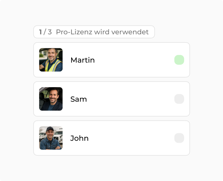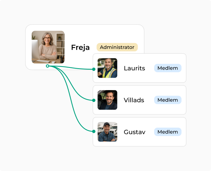 Skalér jeres plan op eller ned, når du har brug for det. Administrator-licenser er gratis, du betaler kun for chauffør-licenser – og hver licens kan flyttes eller genbruges. Alt sammen på ét simpelt abonnement.