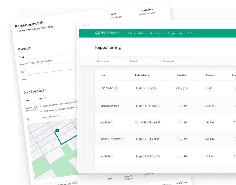 Driversnote hjælper dit team med at tracke kørsel automatisk, spare tid og levere rapporter, der lever op til SKATs krav – alt samlet ét sted.